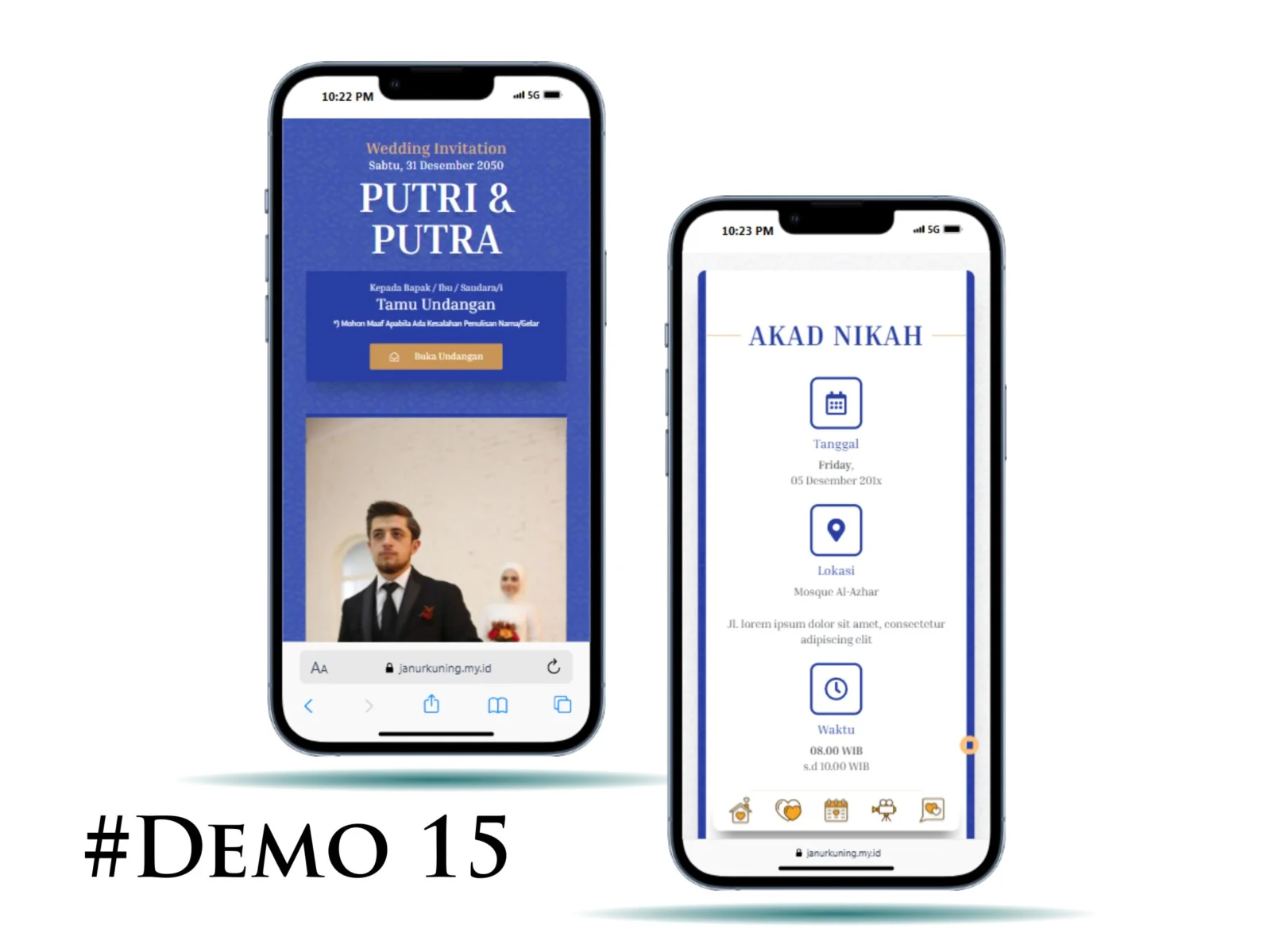 Jatuh cinta pada pandangan pertama sama pilihan desainnya! Modern, elegan, dan bisa di-custom sesuai tema pernikahan kami. Banyak banget teman yang puji undangannya unik dan ‘niat’. Rasanya jauh lebih personal dan istimewa dibanding undangan kertas biasa. Keren!